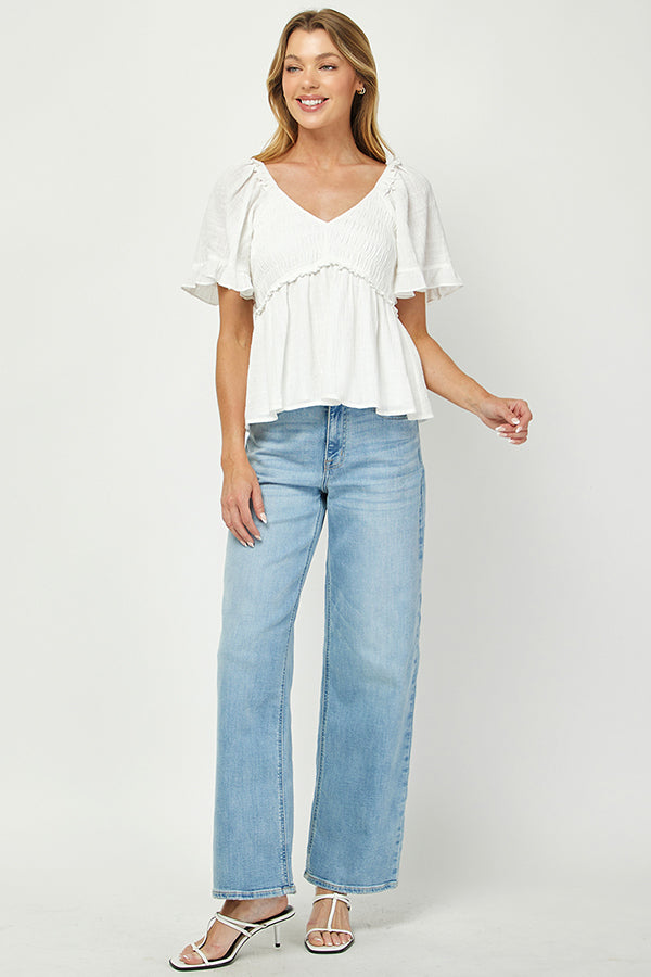 Puff Sleeve Smocked Peplum Blouse - YT3083KJ